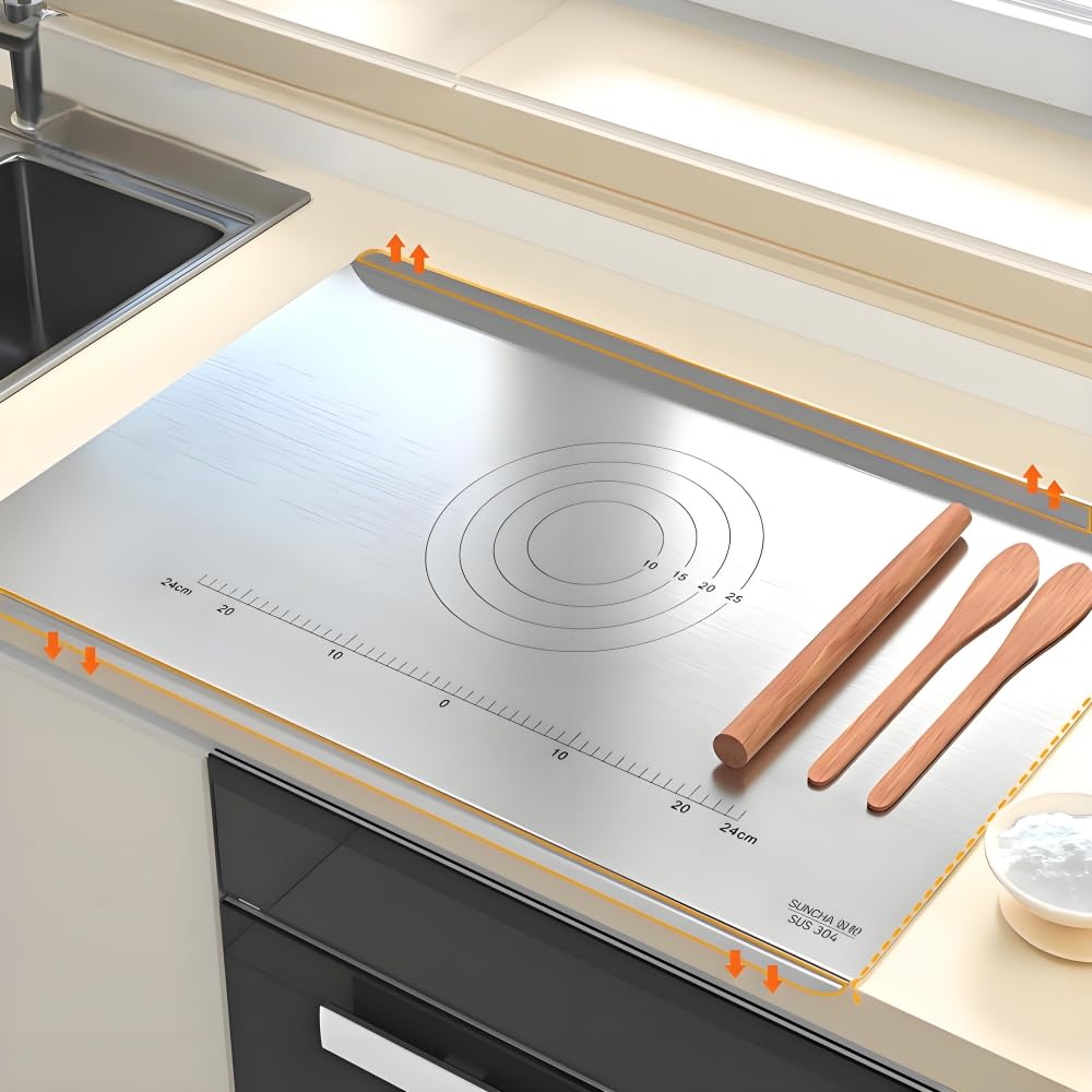 Unsere Knetplatten bestehen aus hochwertigem Edelstahl 316, der eine hervorragende Korrosions- und Temperaturbeständigkeit aufweist. Dieses lebensmittelechte Material ist ungiftig, hygienisch und kann das Wachstum von Bakterien effektiv verhindern – ideal für eine sichere Küchenumgebung. Perfekt als Geschenk zum Einzug.