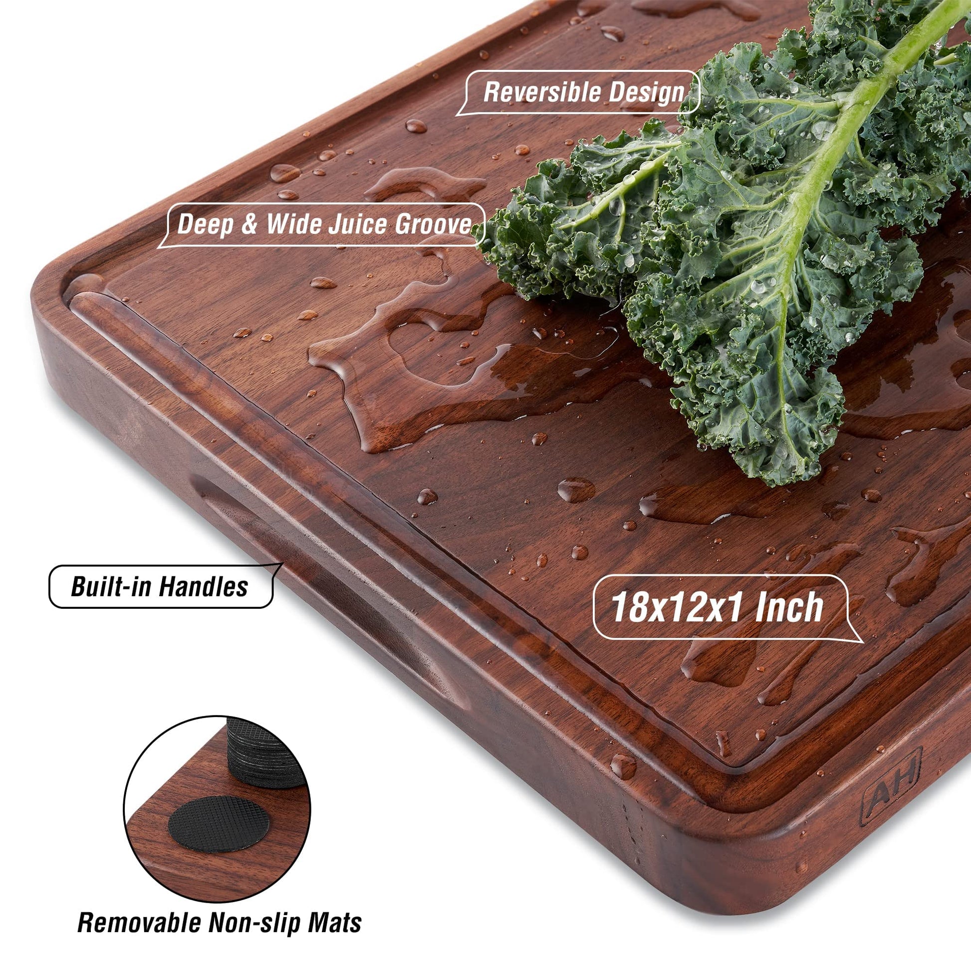 - Wendbar, Saftrille, integrierte Griffe – Dieses Schneidebrett aus Holz verfügt über eine große, glatte Wendefläche zum separaten Schneiden verschiedener Dinge. Breite und tiefe Saftrille, um überschüssige Flüssigkeit während der Zubereitung von Lebensmitteln aufzufangen. Mit integrierten Griffen für einfaches Mitnehmen und Bewegen. 5 Größen erhältlich, um alle Ihre Bedürfnisse abzudecken. Ideal zum Schnitzen von Grillbruststücken, Rindfleisch, Schweinefleisch oder Rippchen beim Grillen, oder als Käsebrett, Charcuterie, Serviertablett.